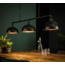 The frame of this 3-light pendant lamp is made of water pipes. The semi-circular metal caps are attached to this. The entire lamp hangs from a single ceiling attachment by means of chains.