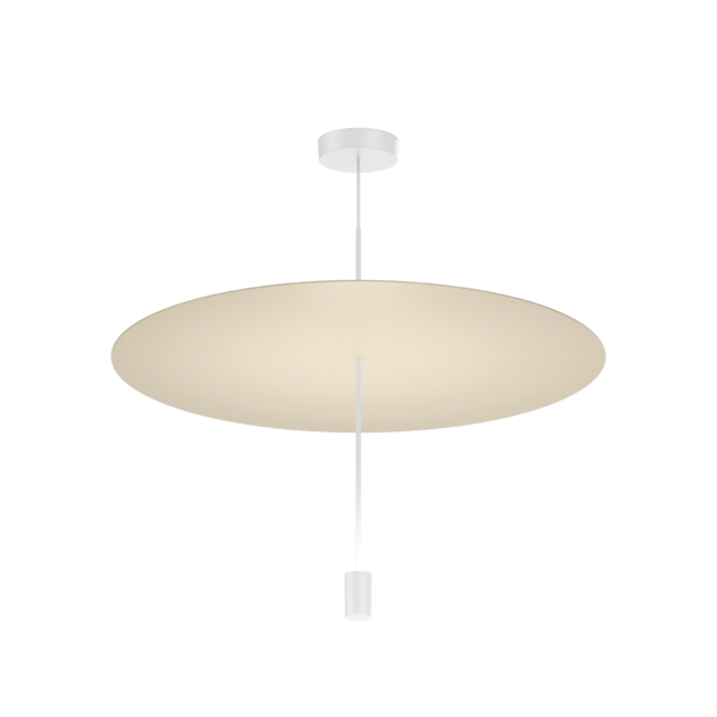 Ronde, aan het plafond hangende armatuur met indirecte verlichting naar boven; aluminium diffusor; oppervlak natgelakt; mat textuur; ophangcomponenten en plafondhouder in wit; PCB; phase-cut dim; lichtkleur 2700 K of 3000 K; ≤ 3 SDCM (initial MacAdam); CRI ≥ 90; 220 - 240 V; beschermingsgraad IP20; Klasse 2; driver inbegrepen; lichtbron kan worden vervangen door Wever & Ducré of door een vakman met uitdrukkelijke toestemming; driver vervangbaar door eindgebruiker;